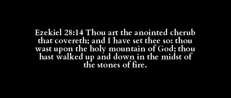 Ezekiel 28:14 Thou art the anointed cherub that covereth; and I have set thee so: thou wast upon the holy mountain of God; thou hast walked up and down in the midst of the stones of fire.