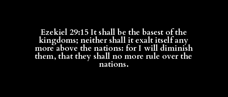 Ezekiel 29:15 It shall be the basest of the kingdoms; neither shall it exalt itself any more above the nations: for I will diminish them, that they shall no more rule over the nations.
