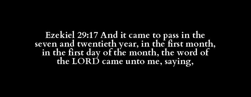 Ezekiel 29:17 And it came to pass in the seven and twentieth year, in the first month, in the first day of the month, the word of the LORD came unto me, saying,