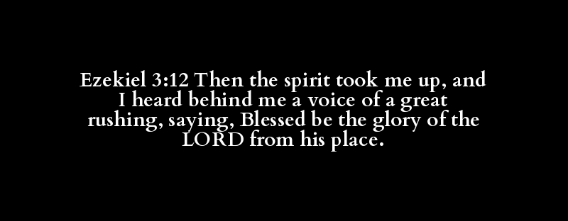 Ezekiel 3:12 Then the spirit took me up, and I heard behind me a voice of a great rushing, saying, Blessed be the glory of the LORD from his place.