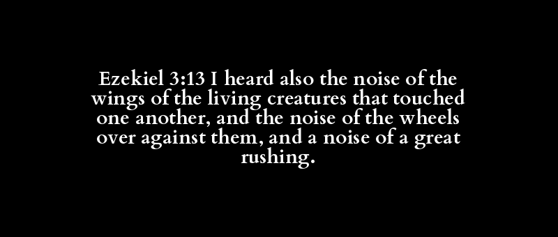Ezekiel 3:13 I heard also the noise of the wings of the living creatures that touched one another, and the noise of the wheels over against them, and a noise of a great rushing.