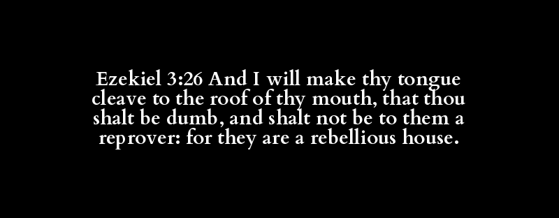 Ezekiel 3:26 And I will make thy tongue cleave to the roof of thy mouth, that thou shalt be dumb, and shalt not be to them a reprover: for they are a rebellious house.