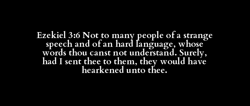 Ezekiel 3:6 Not to many people of a strange speech and of an hard language, whose words thou canst not understand. Surely, had I sent thee to them, they would have hearkened unto thee.