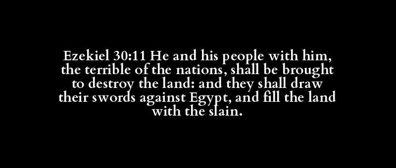 Ezekiel 30:11 He and his people with him, the terrible of the nations, shall be brought to destroy the land: and they shall draw their swords against Egypt, and fill the land with the slain.