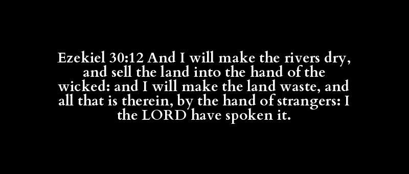 Ezekiel 30:12 And I will make the rivers dry, and sell the land into the hand of the wicked: and I will make the land waste, and all that is therein, by the hand of strangers: I the LORD have spoken it.