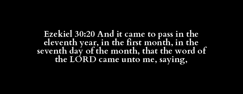 Ezekiel 30:20 And it came to pass in the eleventh year, in the first month, in the seventh day of the month, that the word of the LORD came unto me, saying,