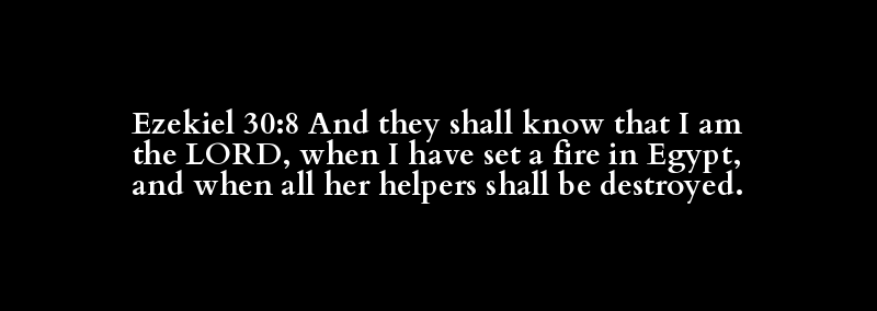Ezekiel 30:8 And they shall know that I am the LORD, when I have set a fire in Egypt, and when all her helpers shall be destroyed.