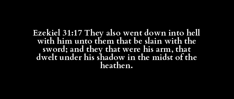 Ezekiel 31:17 They also went down into hell with him unto them that be slain with the sword; and they that were his arm, that dwelt under his shadow in the midst of the heathen.
