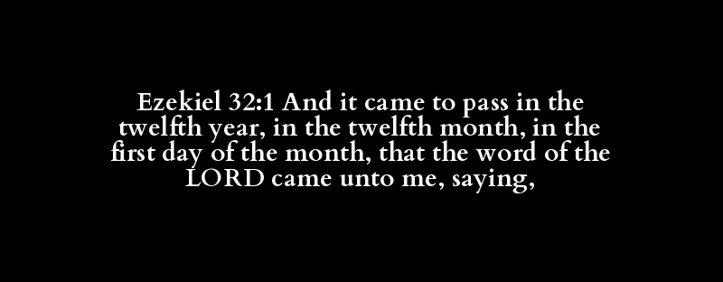 Ezekiel 32:1 And it came to pass in the twelfth year, in the twelfth month, in the first day of the month, that the word of the LORD came unto me, saying,