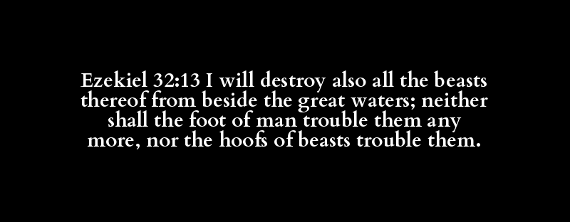 Ezekiel 32:13 I will destroy also all the beasts thereof from beside the great waters; neither shall the foot of man trouble them any more, nor the hoofs of beasts trouble them.