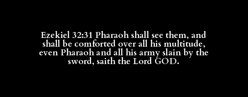 Ezekiel 32:31 Pharaoh shall see them, and shall be comforted over all his multitude, even Pharaoh and all his army slain by the sword, saith the Lord GOD.