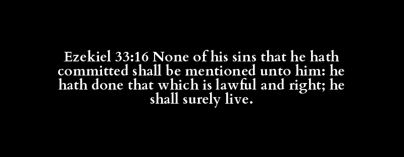 Ezekiel 33:16 None of his sins that he hath committed shall be mentioned unto him: he hath done that which is lawful and right; he shall surely live.