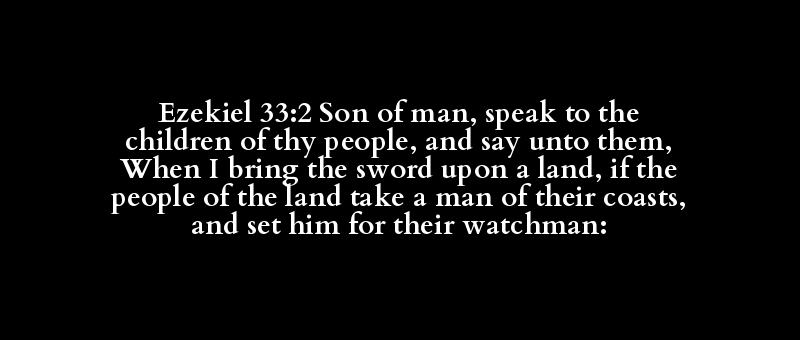 Ezekiel 33:2 Son of man, speak to the children of thy people, and say unto them, When I bring the sword upon a land, if the people of the land take a man of their coasts, and set him for their watchman: