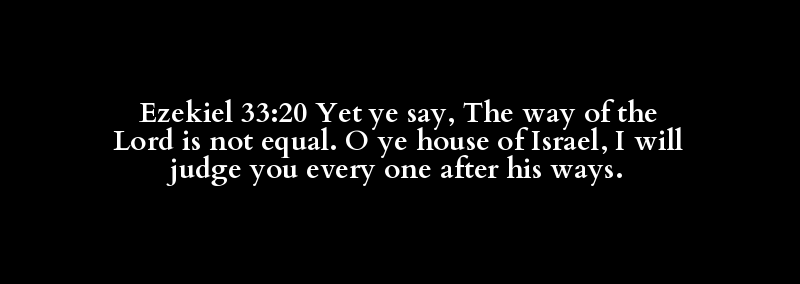 Ezekiel 33:20 Yet ye say, The way of the Lord is not equal. O ye house of Israel, I will judge you every one after his ways.