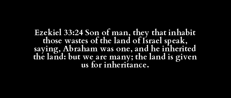 Ezekiel 33:24 Son of man, they that inhabit those wastes of the land of Israel speak, saying, Abraham was one, and he inherited the land: but we are many; the land is given us for inheritance.