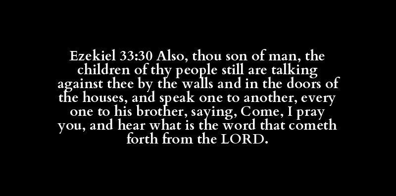 Ezekiel 33:30 Also, thou son of man, the children of thy people still are talking against thee by the walls and in the doors of the houses, and speak one to another, every one to his brother, saying, Come, I pray you, and hear what is the word that cometh forth from the LORD.