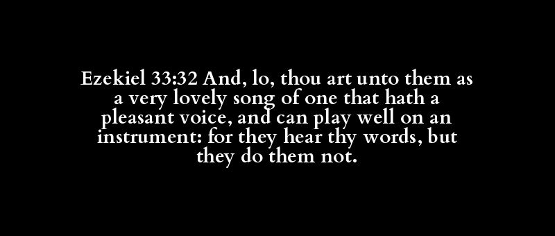 Ezekiel 33:32 And, lo, thou art unto them as a very lovely song of one that hath a pleasant voice, and can play well on an instrument: for they hear thy words, but they do them not.