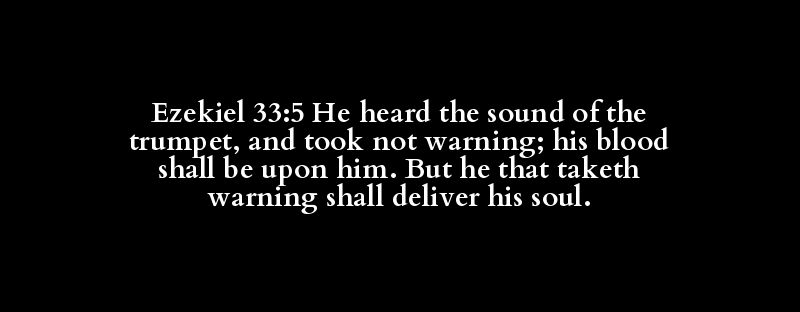 Ezekiel 33:5 He heard the sound of the trumpet, and took not warning; his blood shall be upon him. But he that taketh warning shall deliver his soul.
