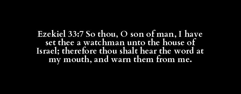 Ezekiel 33:7 So thou, O son of man, I have set thee a watchman unto the house of Israel; therefore thou shalt hear the word at my mouth, and warn them from me.