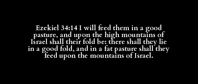 Ezekiel 34:14 I will feed them in a good pasture, and upon the high mountains of Israel shall their fold be: there shall they lie in a good fold, and in a fat pasture shall they feed upon the mountains of Israel.