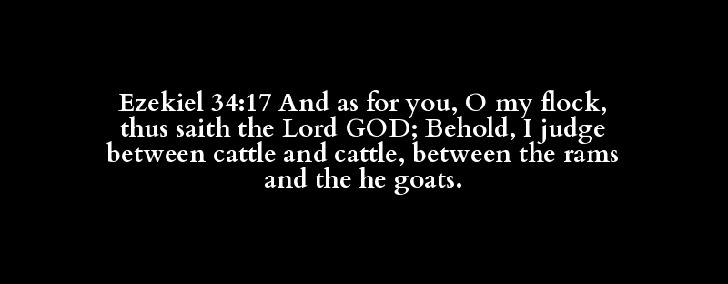 Ezekiel 34:17 And as for you, O my flock, thus saith the Lord GOD; Behold, I judge between cattle and cattle, between the rams and the he goats.