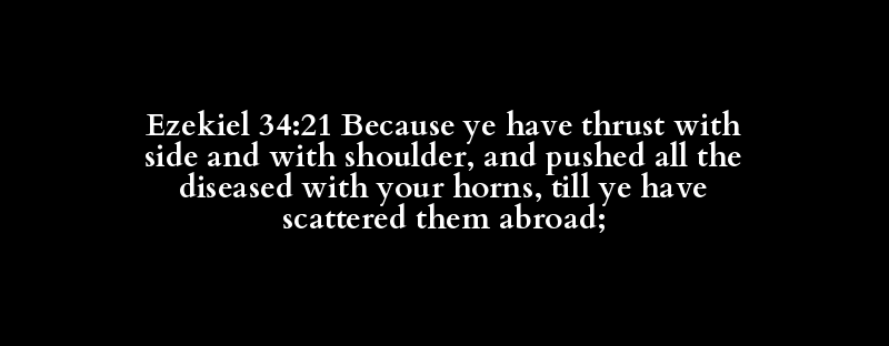 Ezekiel 34:21 Because ye have thrust with side and with shoulder, and pushed all the diseased with your horns, till ye have scattered them abroad;