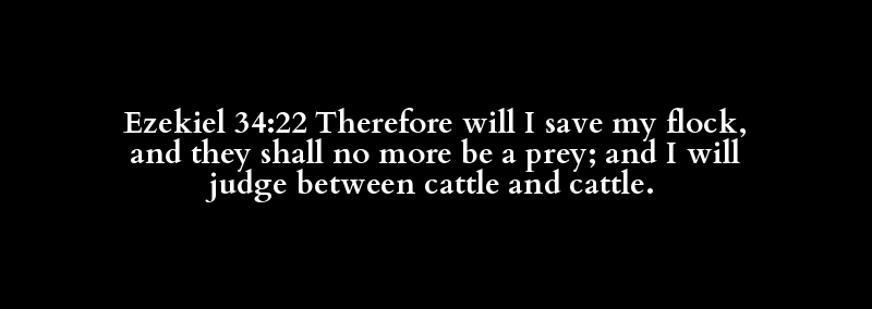 Ezekiel 34:22 Therefore will I save my flock, and they shall no more be a prey; and I will judge between cattle and cattle.