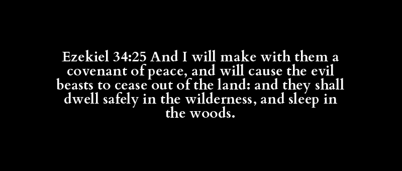 Ezekiel 34:25 And I will make with them a covenant of peace, and will cause the evil beasts to cease out of the land: and they shall dwell safely in the wilderness, and sleep in the woods.