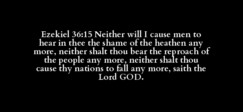 Ezekiel 36:15 Neither will I cause men to hear in thee the shame of the heathen any more, neither shalt thou bear the reproach of the people any more, neither shalt thou cause thy nations to fall any more, saith the Lord GOD.