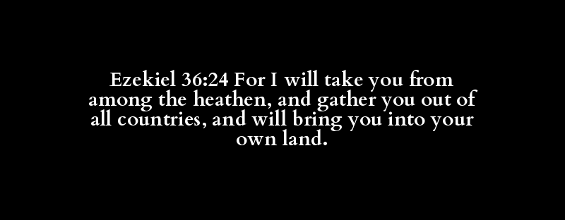 Ezekiel 36:24 For I will take you from among the heathen, and gather you out of all countries, and will bring you into your own land.