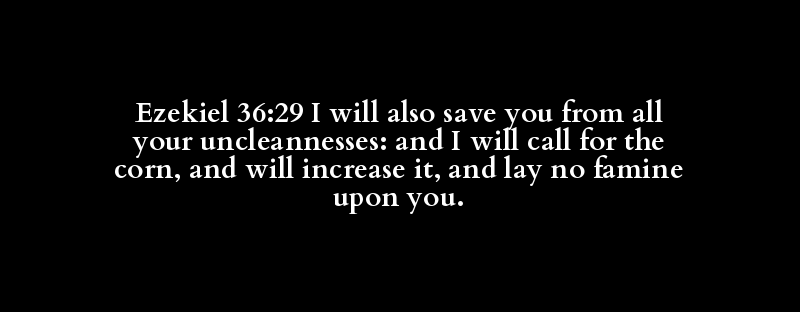 Ezekiel 36:29 I will also save you from all your uncleannesses: and I will call for the corn, and will increase it, and lay no famine upon you.
