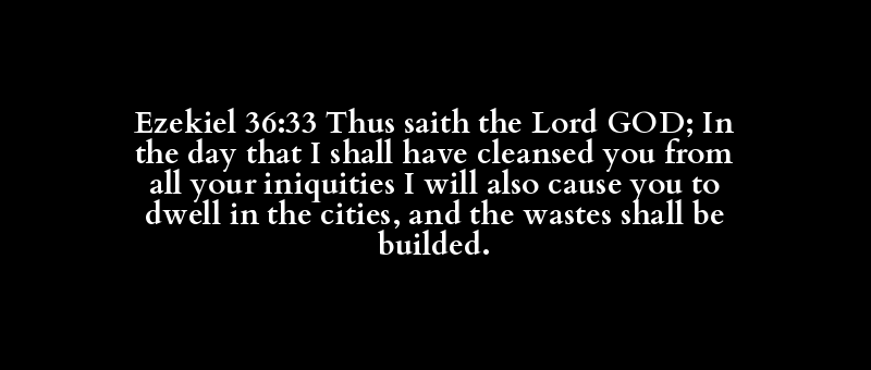 Ezekiel 36:33 Thus saith the Lord GOD; In the day that I shall have cleansed you from all your iniquities I will also cause you to dwell in the cities, and the wastes shall be builded.