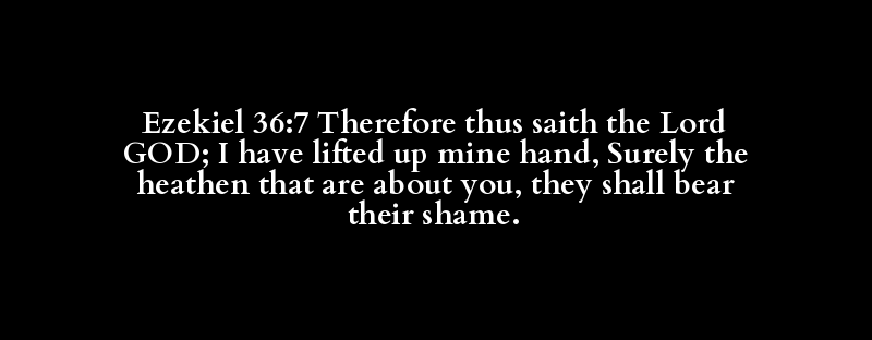 Ezekiel 36:7 Therefore thus saith the Lord GOD; I have lifted up mine hand, Surely the heathen that are about you, they shall bear their shame.