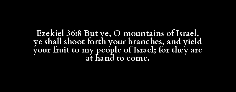 Ezekiel 36:8 But ye, O mountains of Israel, ye shall shoot forth your branches, and yield your fruit to my people of Israel; for they are at hand to come.