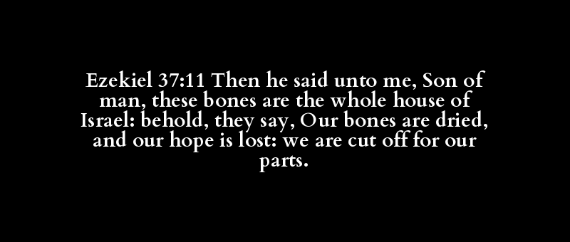 Ezekiel 37:11 Then he said unto me, Son of man, these bones are the whole house of Israel: behold, they say, Our bones are dried, and our hope is lost: we are cut off for our parts.