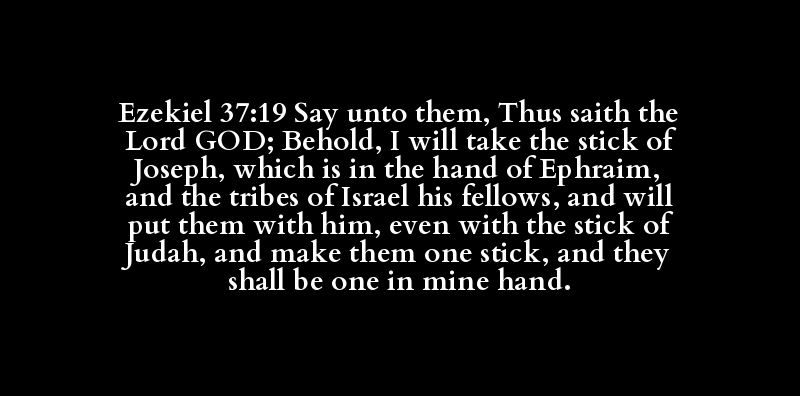 Ezekiel 37:19 Say unto them, Thus saith the Lord GOD; Behold, I will take the stick of Joseph, which is in the hand of Ephraim, and the tribes of Israel his fellows, and will put them with him, even with the stick of Judah, and make them one stick, and they shall be one in mine hand.