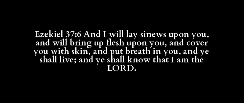 Ezekiel 37:6 And I will lay sinews upon you, and will bring up flesh upon you, and cover you with skin, and put breath in you, and ye shall live; and ye shall know that I am the LORD.