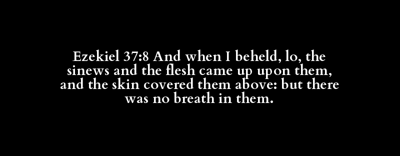 Ezekiel 37:8 And when I beheld, lo, the sinews and the flesh came up upon them, and the skin covered them above: but there was no breath in them.