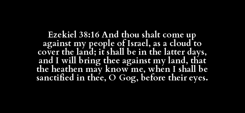 Ezekiel 38:16 And thou shalt come up against my people of Israel, as a cloud to cover the land; it shall be in the latter days, and I will bring thee against my land, that the heathen may know me, when I shall be sanctified in thee, O Gog, before their eyes.