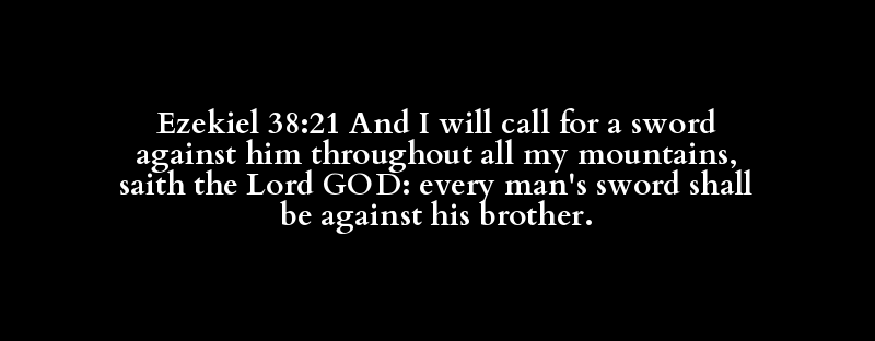 Ezekiel 38:21 And I will call for a sword against him throughout all my mountains, saith the Lord GOD: every man's sword shall be against his brother.