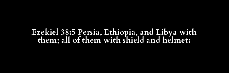 Ezekiel 38:5 Persia, Ethiopia, and Libya with them; all of them with shield and helmet: