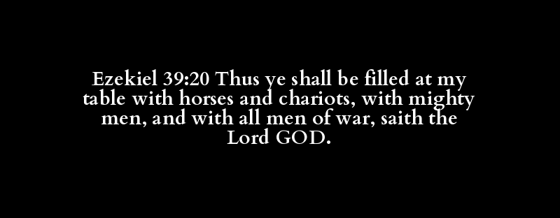 Ezekiel 39:20 Thus ye shall be filled at my table with horses and chariots, with mighty men, and with all men of war, saith the Lord GOD.