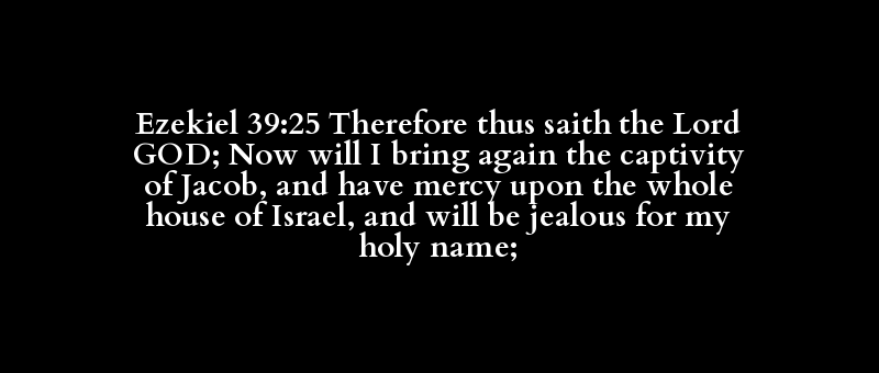 Ezekiel 39:25 Therefore thus saith the Lord GOD; Now will I bring again the captivity of Jacob, and have mercy upon the whole house of Israel, and will be jealous for my holy name;