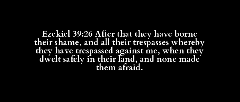 Ezekiel 39:26 After that they have borne their shame, and all their trespasses whereby they have trespassed against me, when they dwelt safely in their land, and none made them afraid.