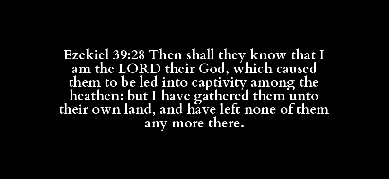 Ezekiel 39:28 Then shall they know that I am the LORD their God, which caused them to be led into captivity among the heathen: but I have gathered them unto their own land, and have left none of them any more there.