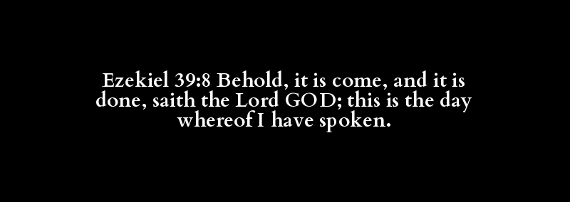 Ezekiel 39:8 Behold, it is come, and it is done, saith the Lord GOD; this is the day whereof I have spoken.