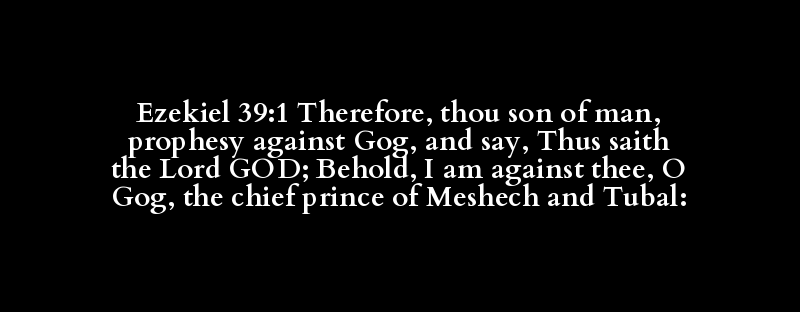 Ezekiel 39:1 Therefore, thou son of man, prophesy against Gog, and say, Thus saith the Lord GOD; Behold, I am against thee, O Gog, the chief prince of Meshech and Tubal: