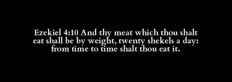 Ezekiel 4:10 And thy meat which thou shalt eat shall be by weight, twenty shekels a day: from time to time shalt thou eat it.