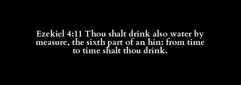 Ezekiel 4:11 Thou shalt drink also water by measure, the sixth part of an hin: from time to time shalt thou drink.