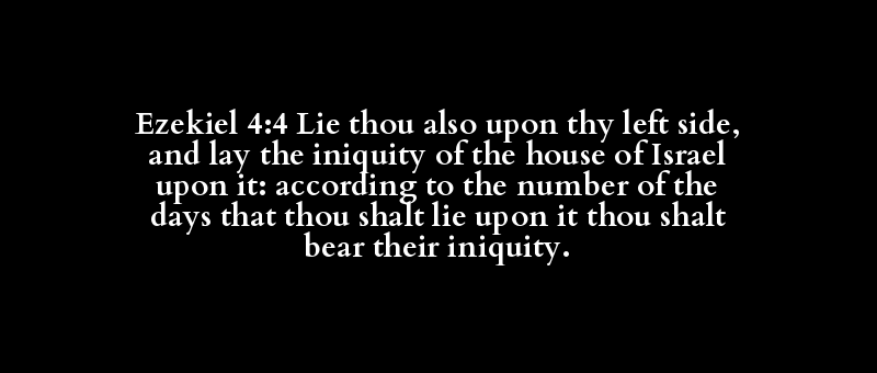 Ezekiel 4:4 Lie thou also upon thy left side, and lay the iniquity of the house of Israel upon it: according to the number of the days that thou shalt lie upon it thou shalt bear their iniquity.